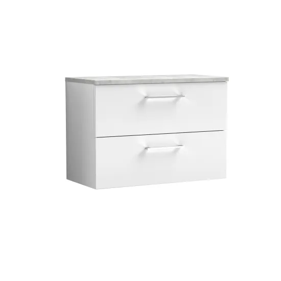 Nuie 800mm Gloss White Wall Hung 2-Drawer Vanity Unit With Laminate Top