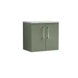 Nuie 600mm Wall Hung Satin Green 2-Door Vanity Unit With Laminate Top