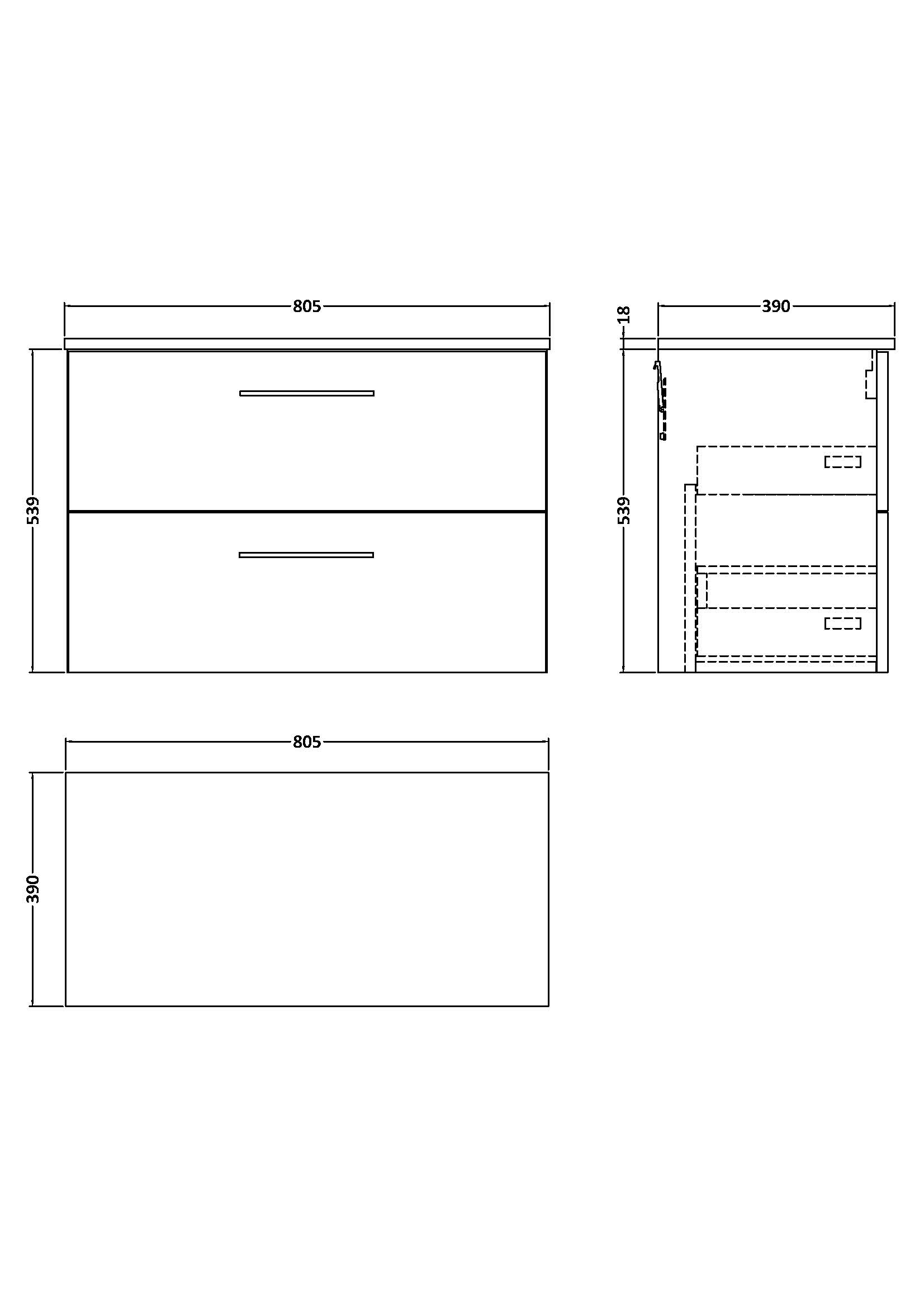 nuie Arno 800mm Wall Hung 2-Drawer Vanity & Worktop - Solace Oak
