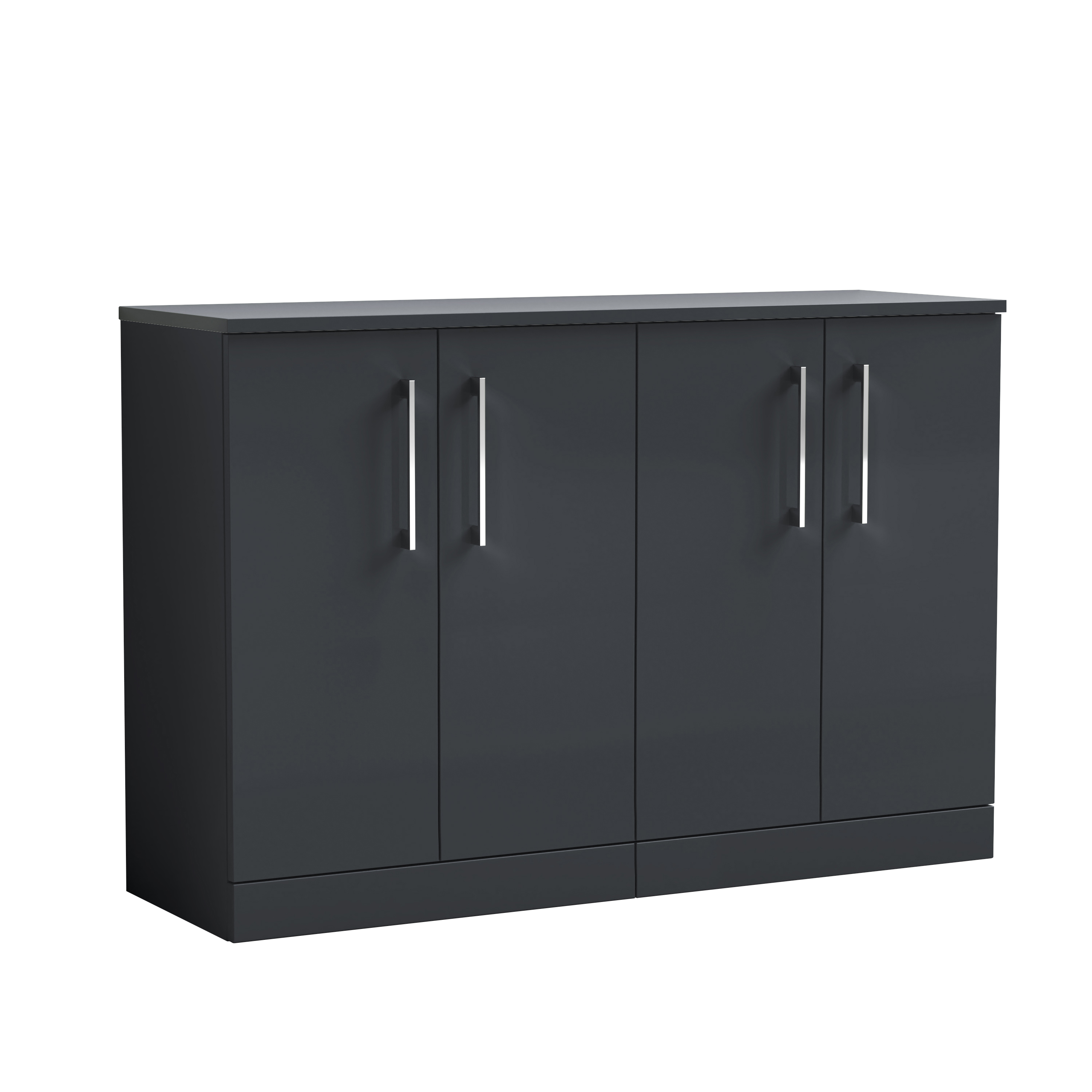Nuie 1205mm Soft Black Floor Standing 4 Door Double Basin Vanity Unit With Handles