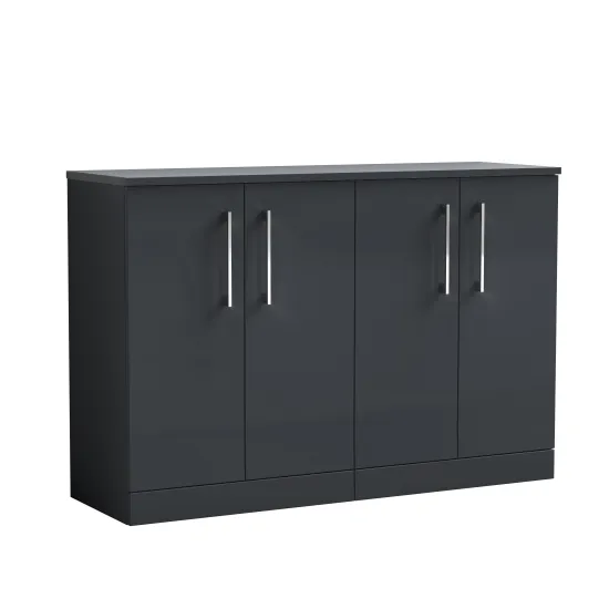 nuie Arno Floor Standing 4 Door Vanity & Laminate Worktop, 1200mm - Soft Black