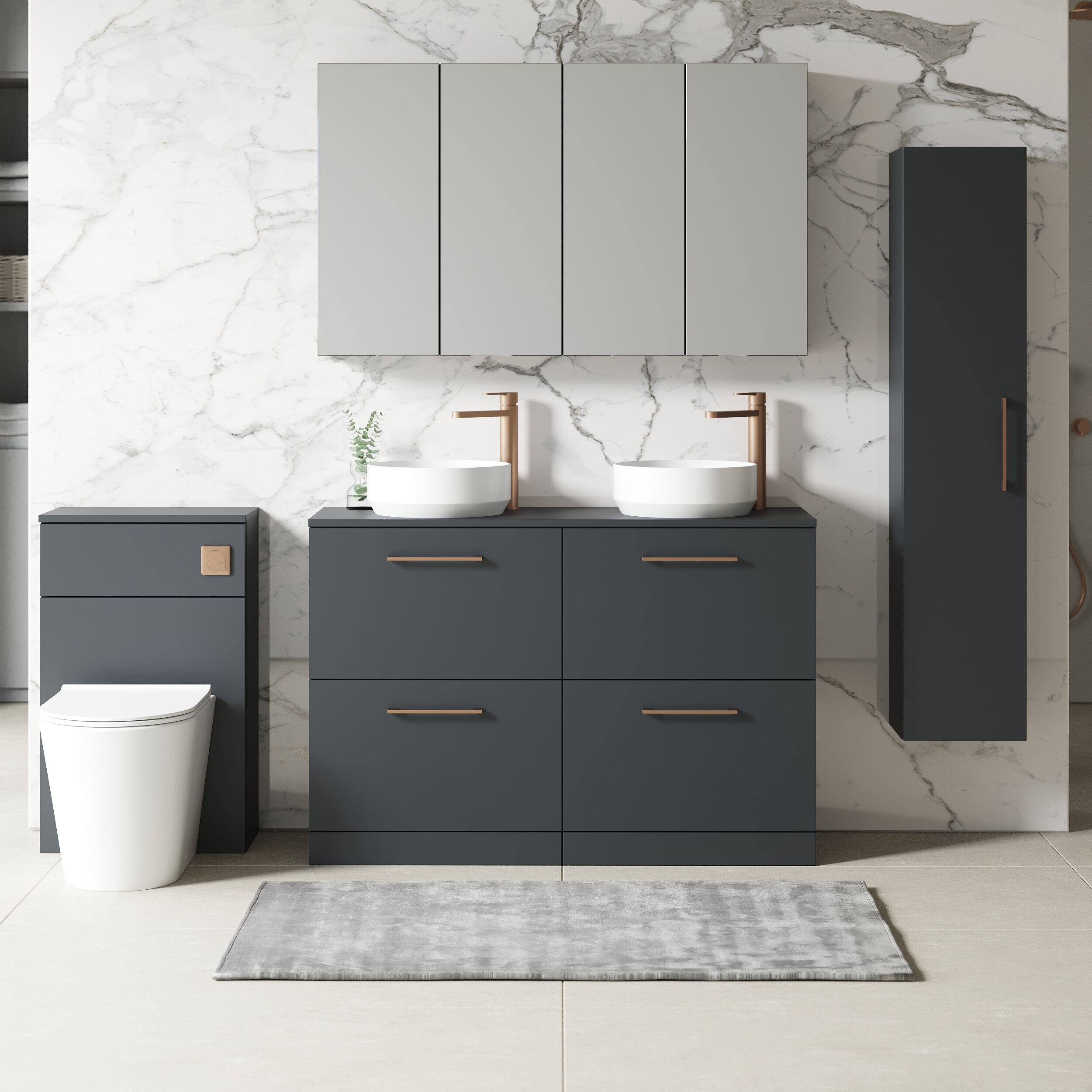 Nuie 1200mm Soft Black Floor Standing 4 Drawer Vanity Unit & Double Ceramic Basin