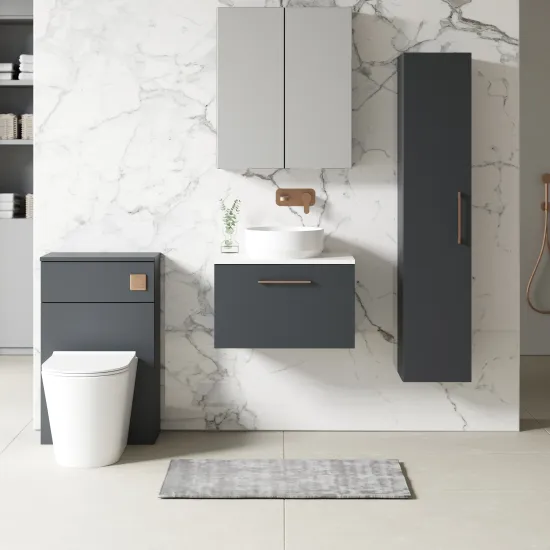 This wall hung unit creates more space in your bathroom giving the illusion of a bigger bathroom