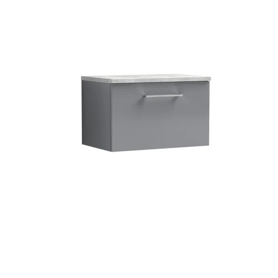 Nuie Arno 600mm Satin Grey Wall Hung 1 Drawer Vanity Unit With Laminate Worktop