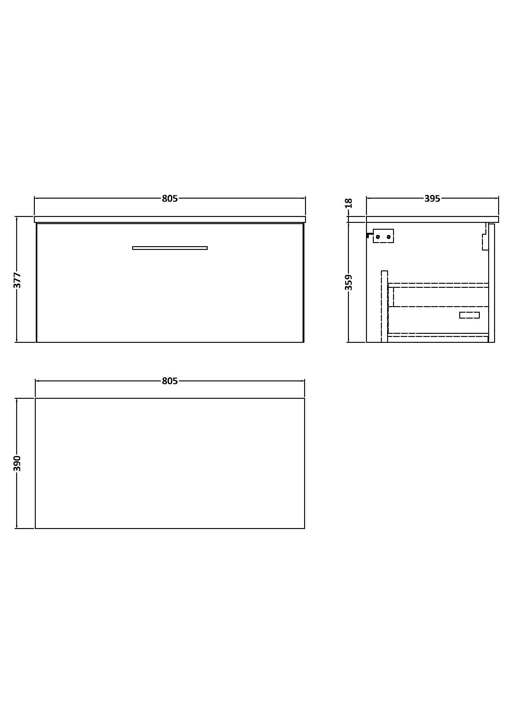 Nuie 805mm Satin Grey Wall Hung Vanity Unit With Worktop