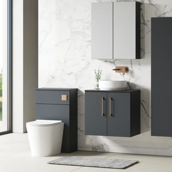 Nuie Arno 600mm Soft Black Wall Hung 2 Door Vanity Unit With Laminate Worktop
