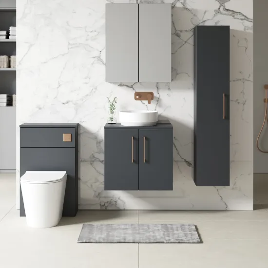 Nuie Arno 600mm Soft Black Wall Hung 2 Door Vanity Unit with Basin