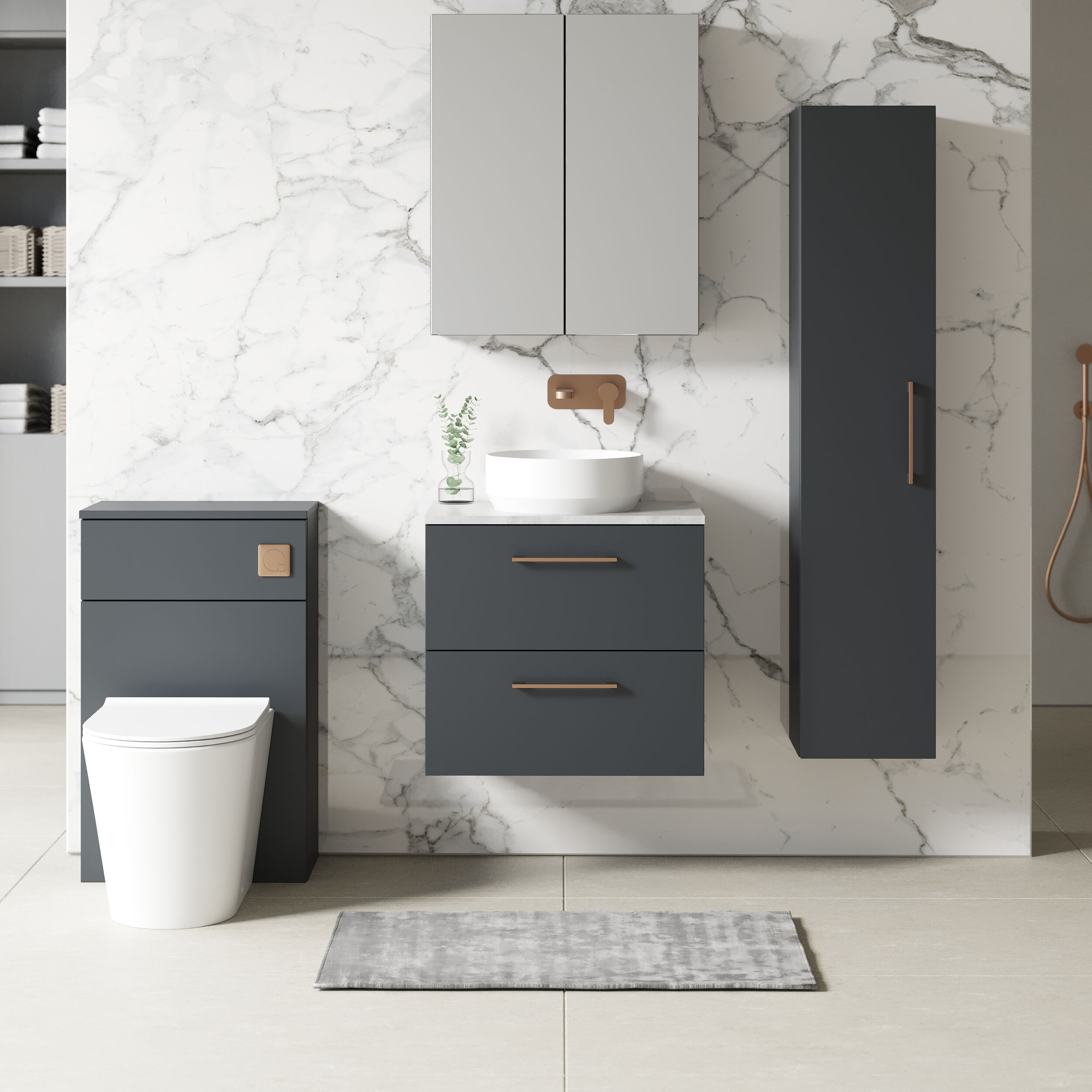 nuie Arno Wall Hung 2 Drawer Vanity & Laminate Worktop, 600mm - Soft Black/Bellato Grey