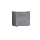 Nuie Arno 600mm Satin Grey Wall Hung 2 Drawer Vanity Unit With Laminate Worktop