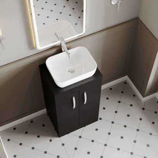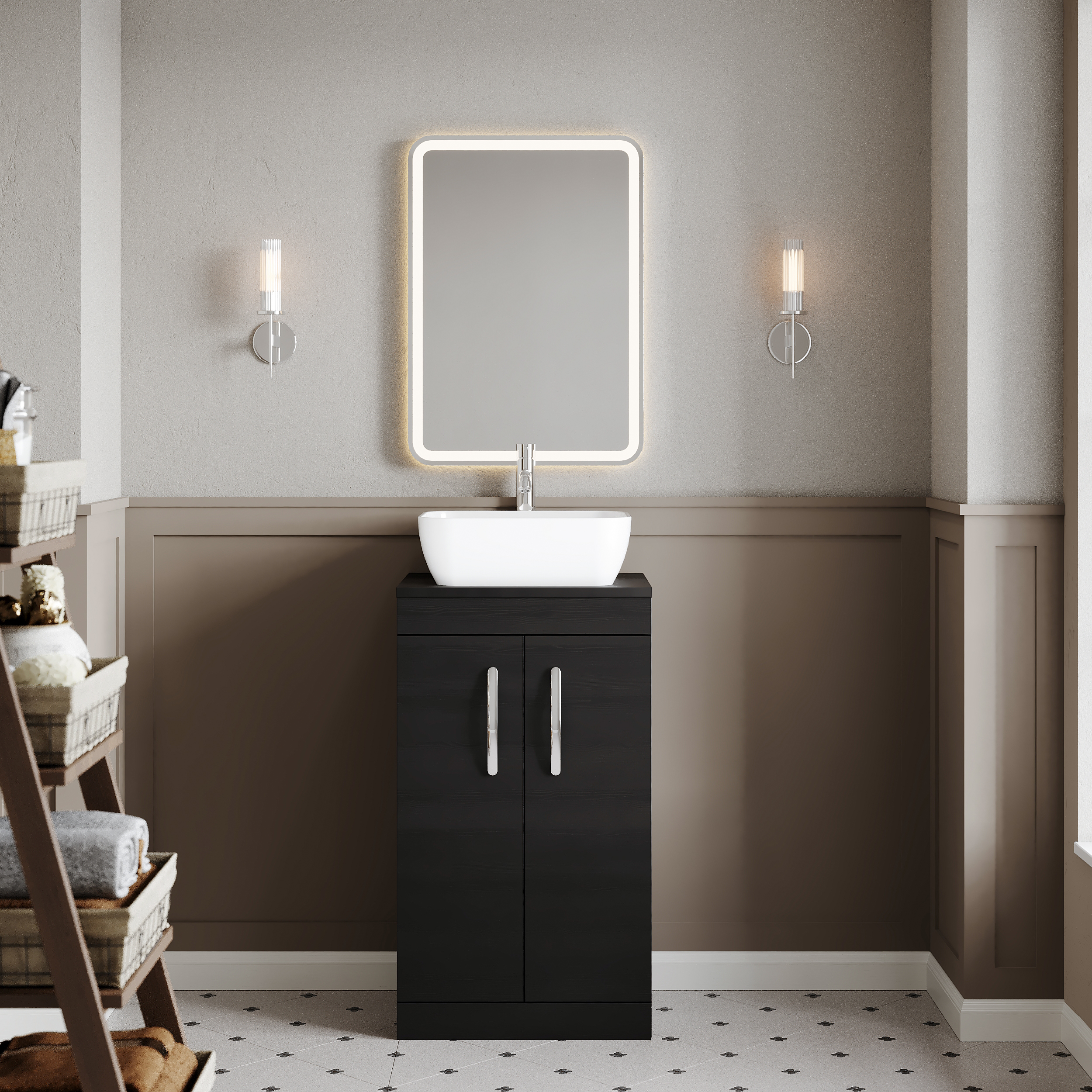 nuie Athena Floor Standing 2 Door Vanity With Worktop 500mm - Hacienda Black