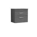 Nuie Athena 600mm Wall Hung 2 Drawer Anthracite Woodgrain Vanity Unit With Worktop With Soft Close Drawers