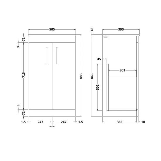 Nuie 505mm Gloss Grey Floor Standing 2 Door Vanity Unit With Worktop