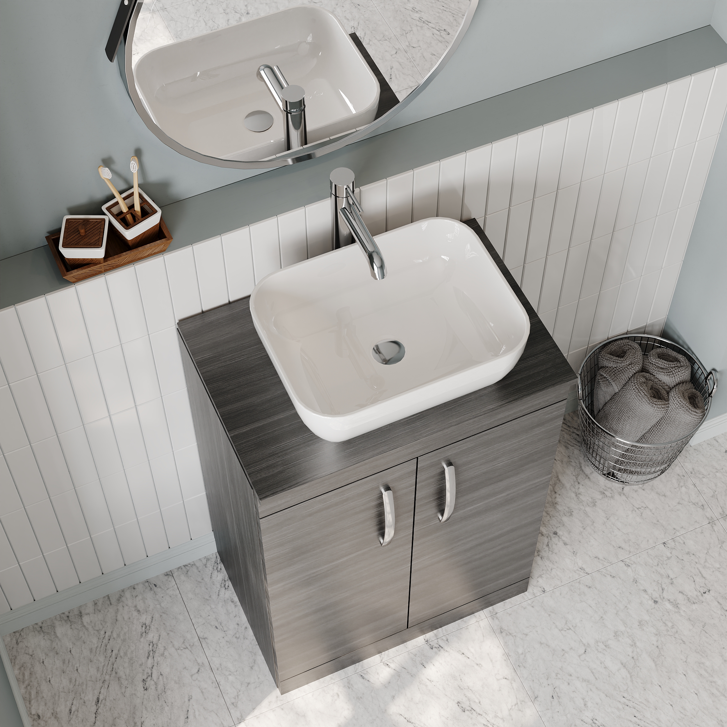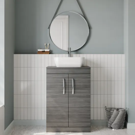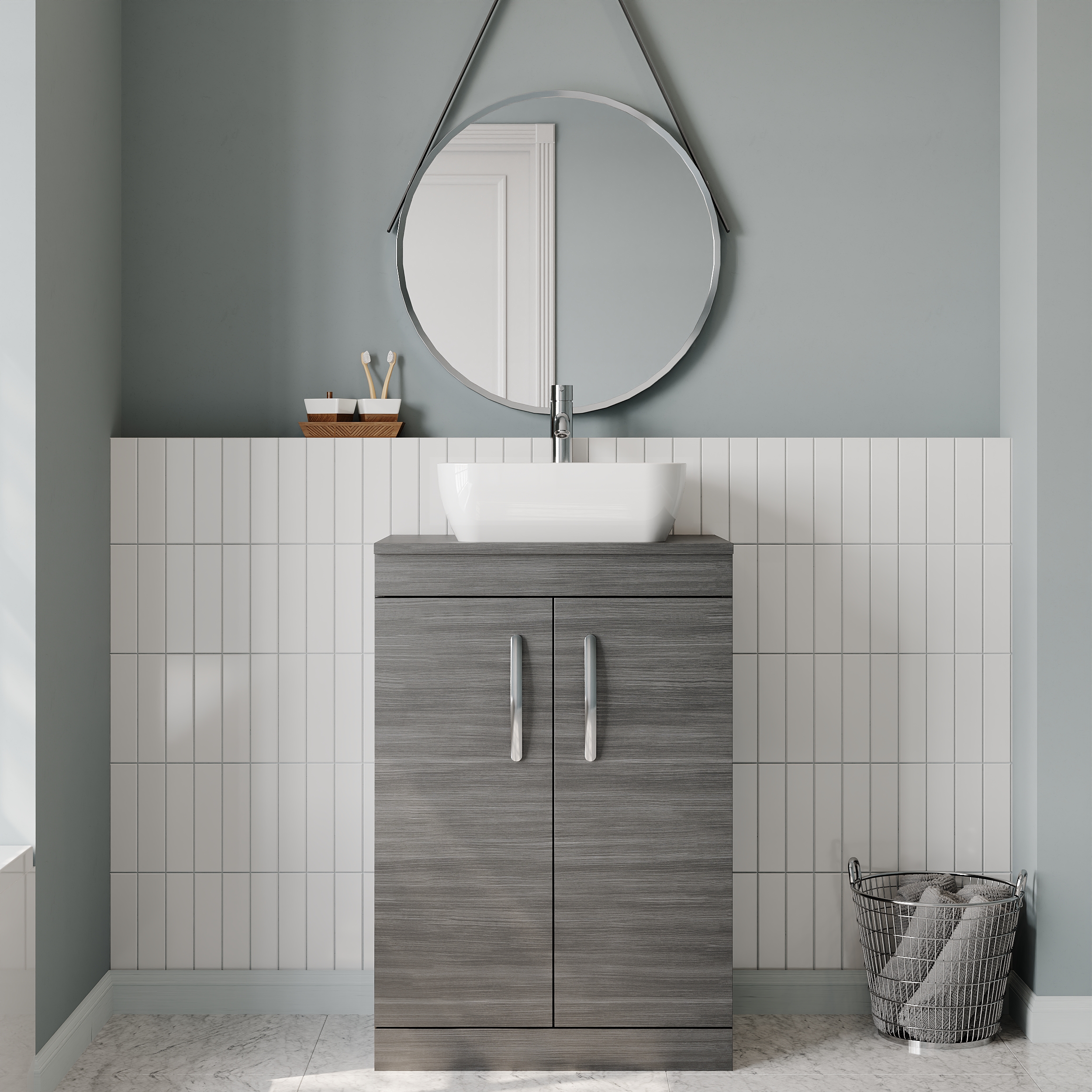 Nuie Athena 600mm Anthracite Woodgrain Floor Standing 2 Door Vanity Unit With Worktop