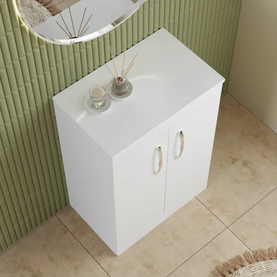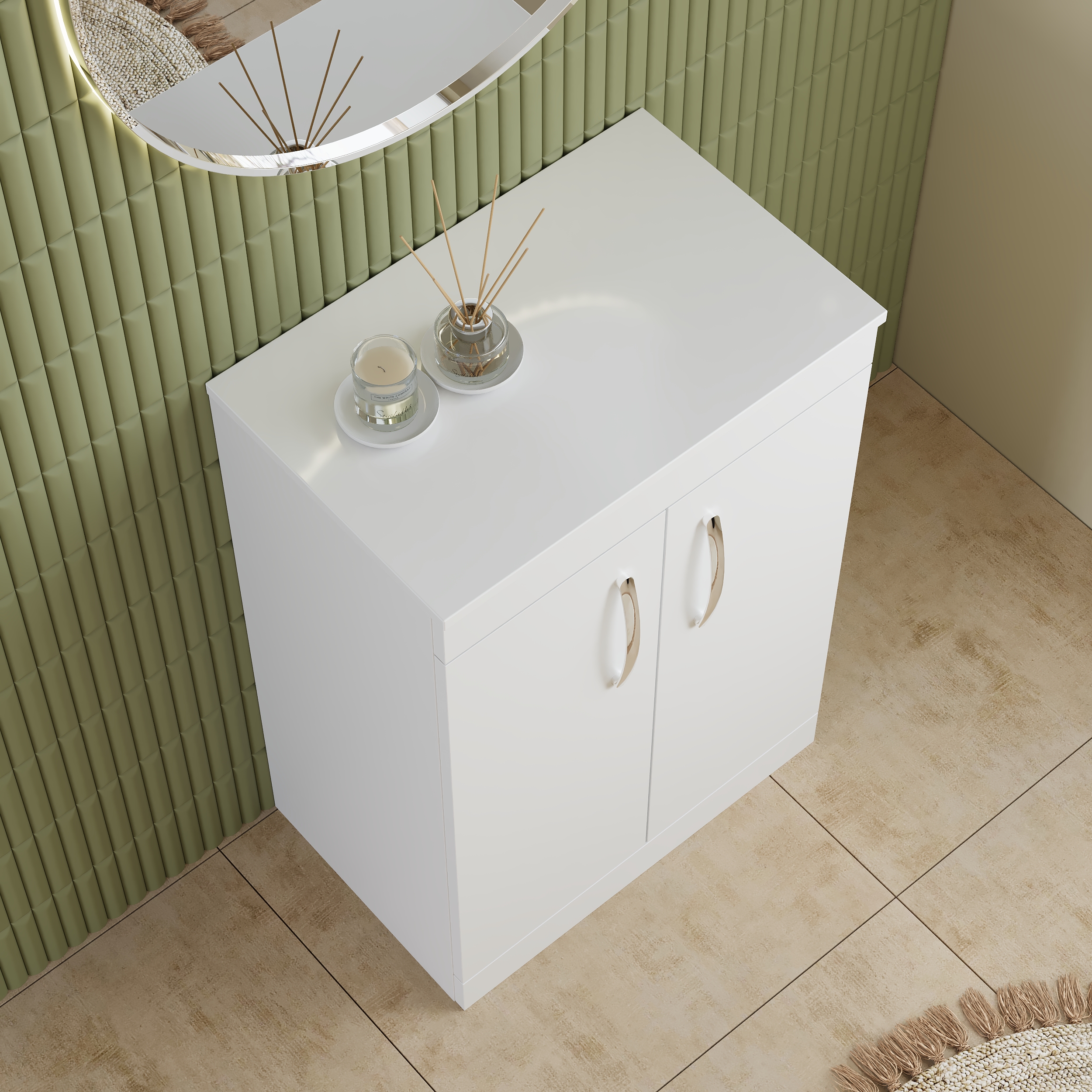 Nuie Athena 600mm Floor Standing Gloss White 2 Door Vanity Unit With Worktop
