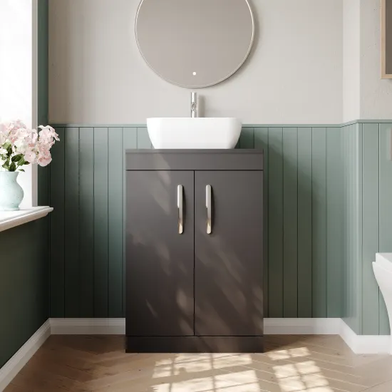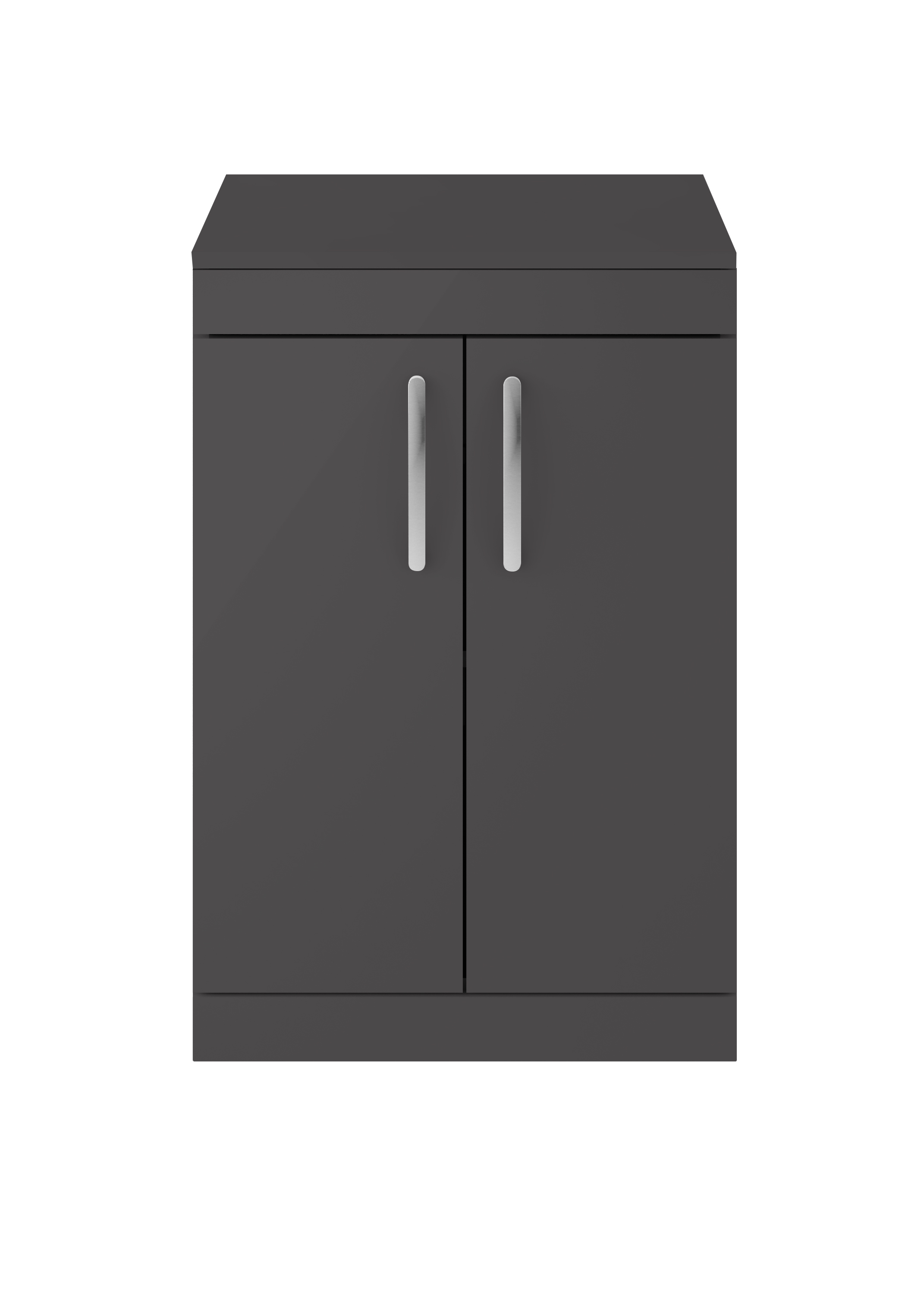 nuie Athena Floor Standing 2 Door Vanity With Worktop 600mm - Gloss Grey