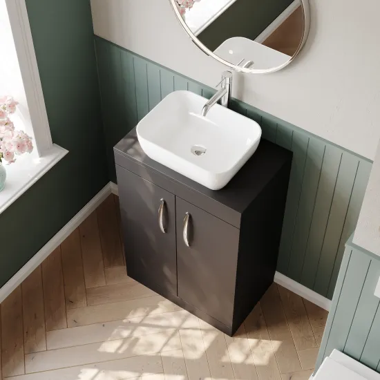 This sleek gloss grey finish compliments any modern bathroom and creates a designer look