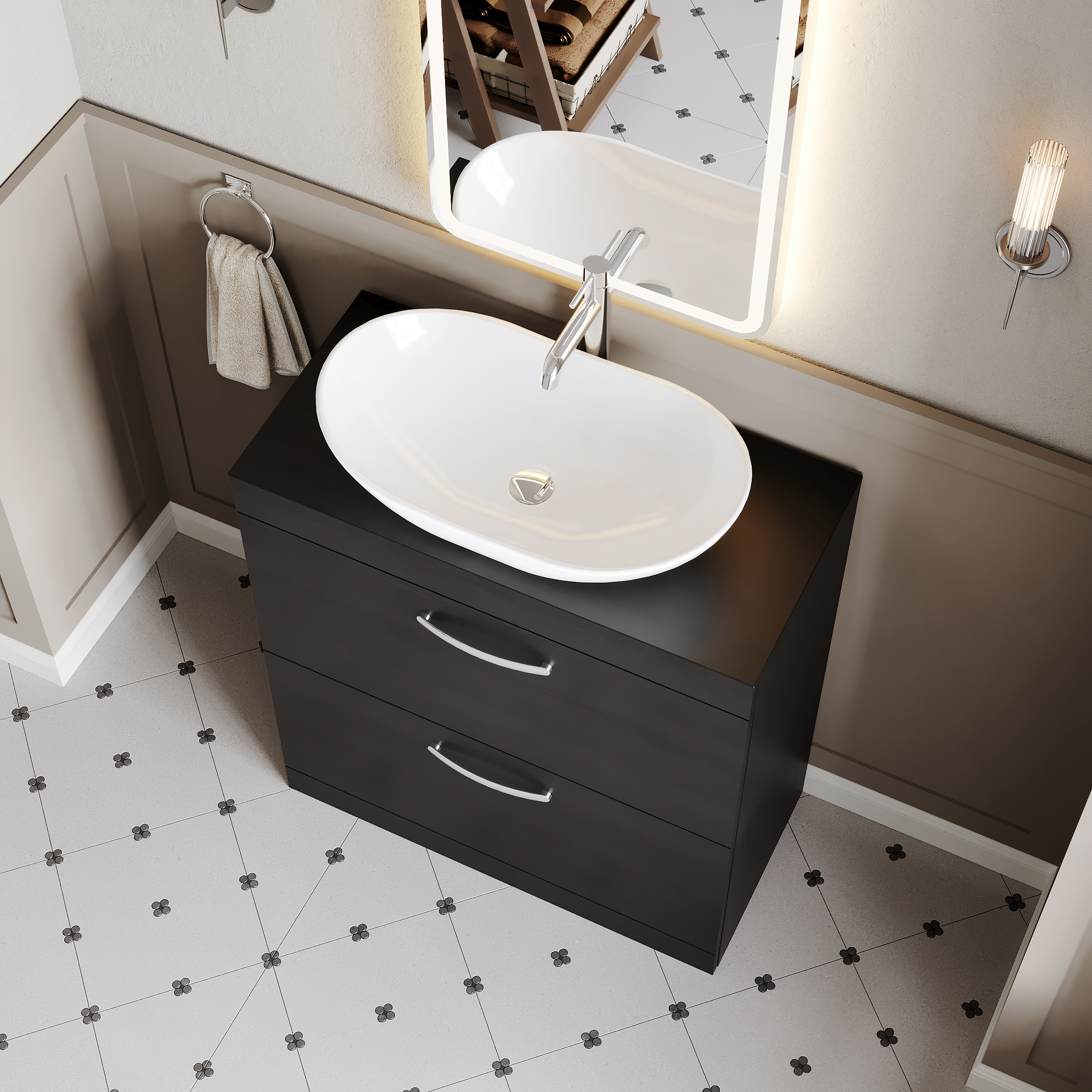 This striking Charcoal Black finish compliments any modern bathroom to create a designer look