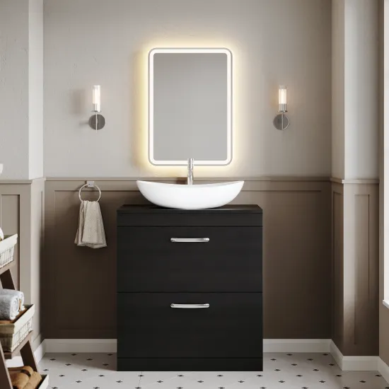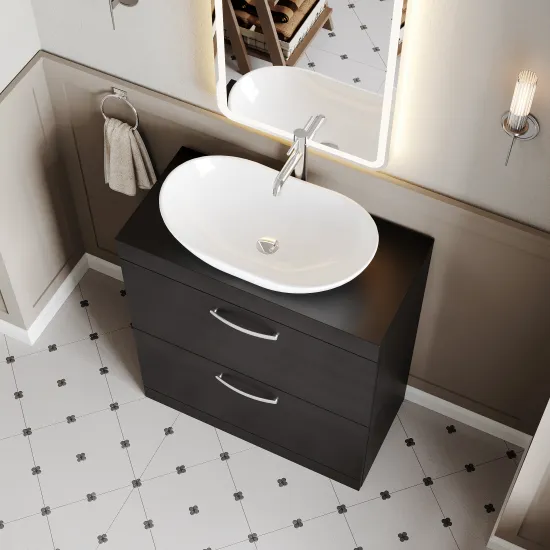 nuie Athena Floor Standing 2 Drawer Vanity With Worktop 800mm - Hacienda Black