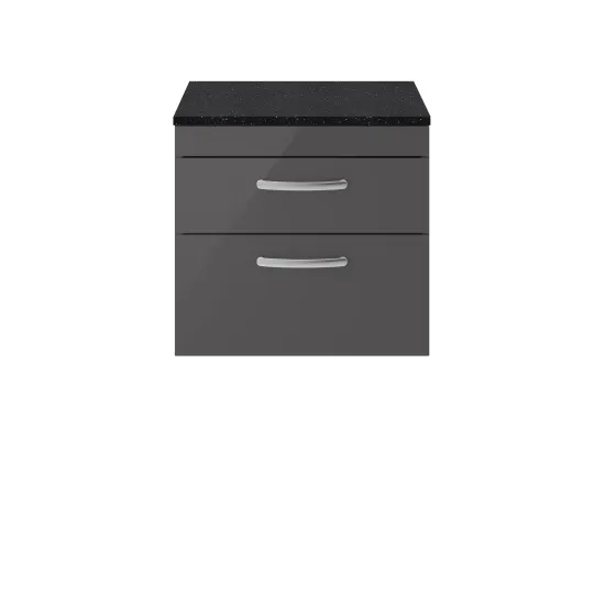 nuie Athena Wall Hung 2 Drawer Vanity With Sparkling Black Worktop 600mm - Gloss Grey