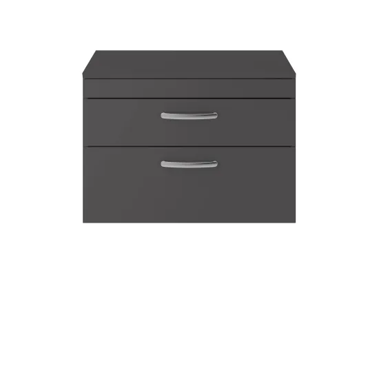 nuie Athena Wall Hung 2 Drawer Vanity With Worktop 800mm - Gloss Grey