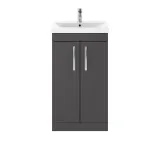 Nuie Athena 500mm Gloss Grey Floor Standing 2 Door Vanity Unit With 1 Tap Hole Basin