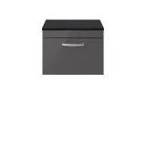 Nuie Athena 600mm Gloss Grey Wall Hung Single Drawer Vanity Unit With Worktop & Soft Close Drawers