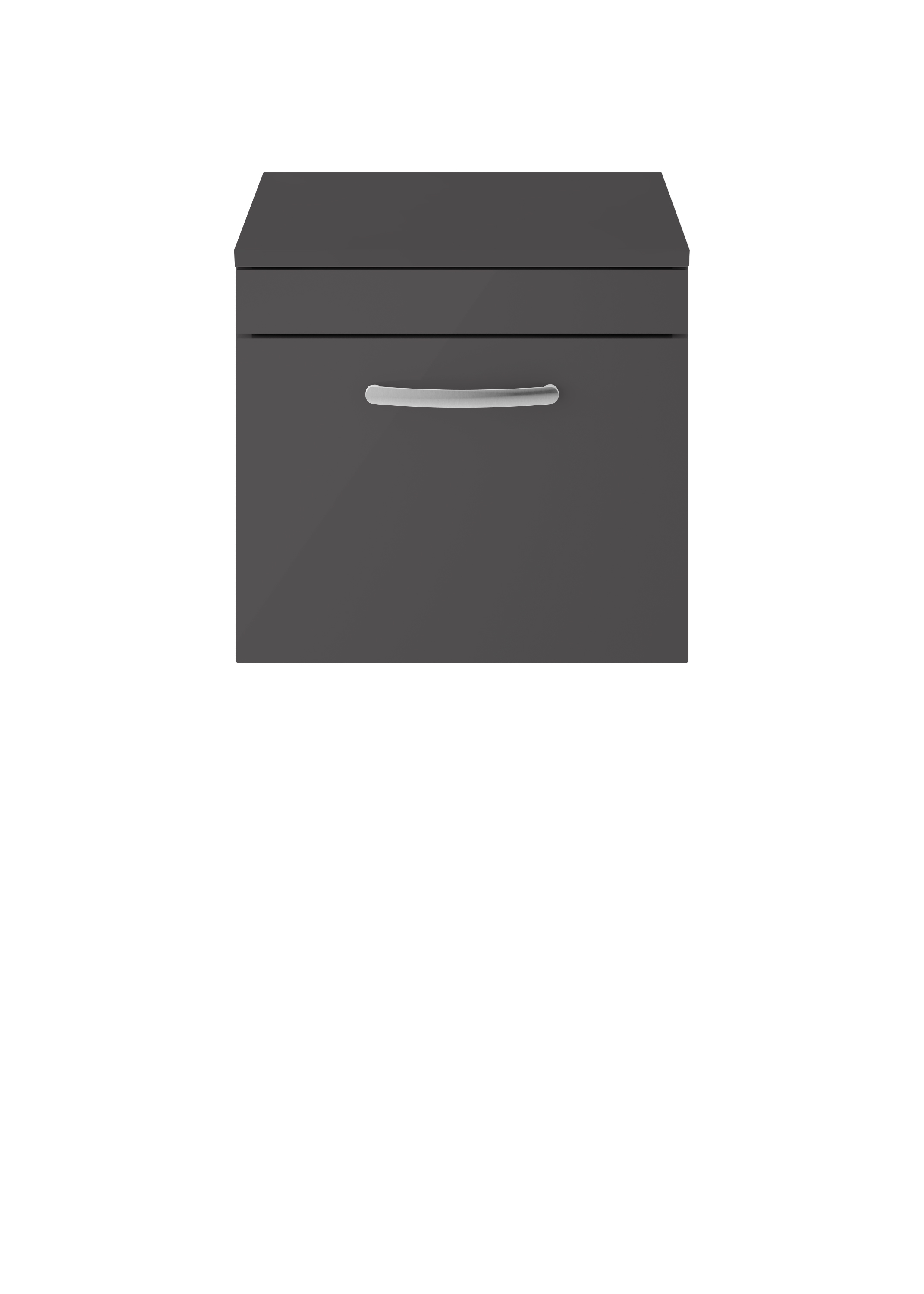 nuie Athena Wall Hung Single Drawer Vanity With Worktop 500mm - Gloss Grey