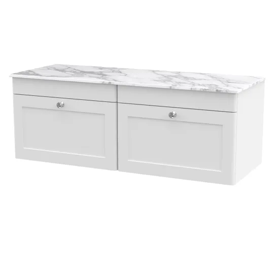 Nuie Classique 1200mm Wall Hung Satin White 2-Drawer Vanity Unit With Marble Top