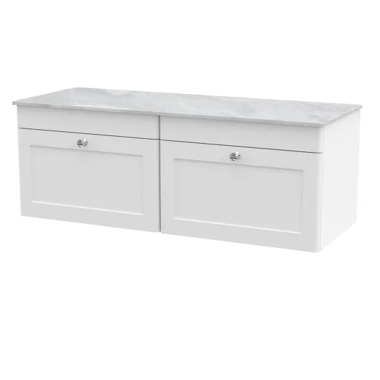 nuie Classique 1200mm Wall Hung 2-Drawer Vanity with Marble Top - Satin White