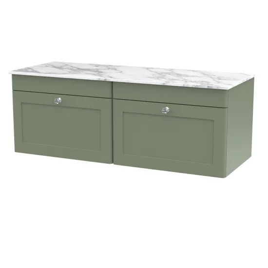Nuie Classique 1200mm Satin Green Wall Hung 2-Drawer Vanity Unit With Marble Top