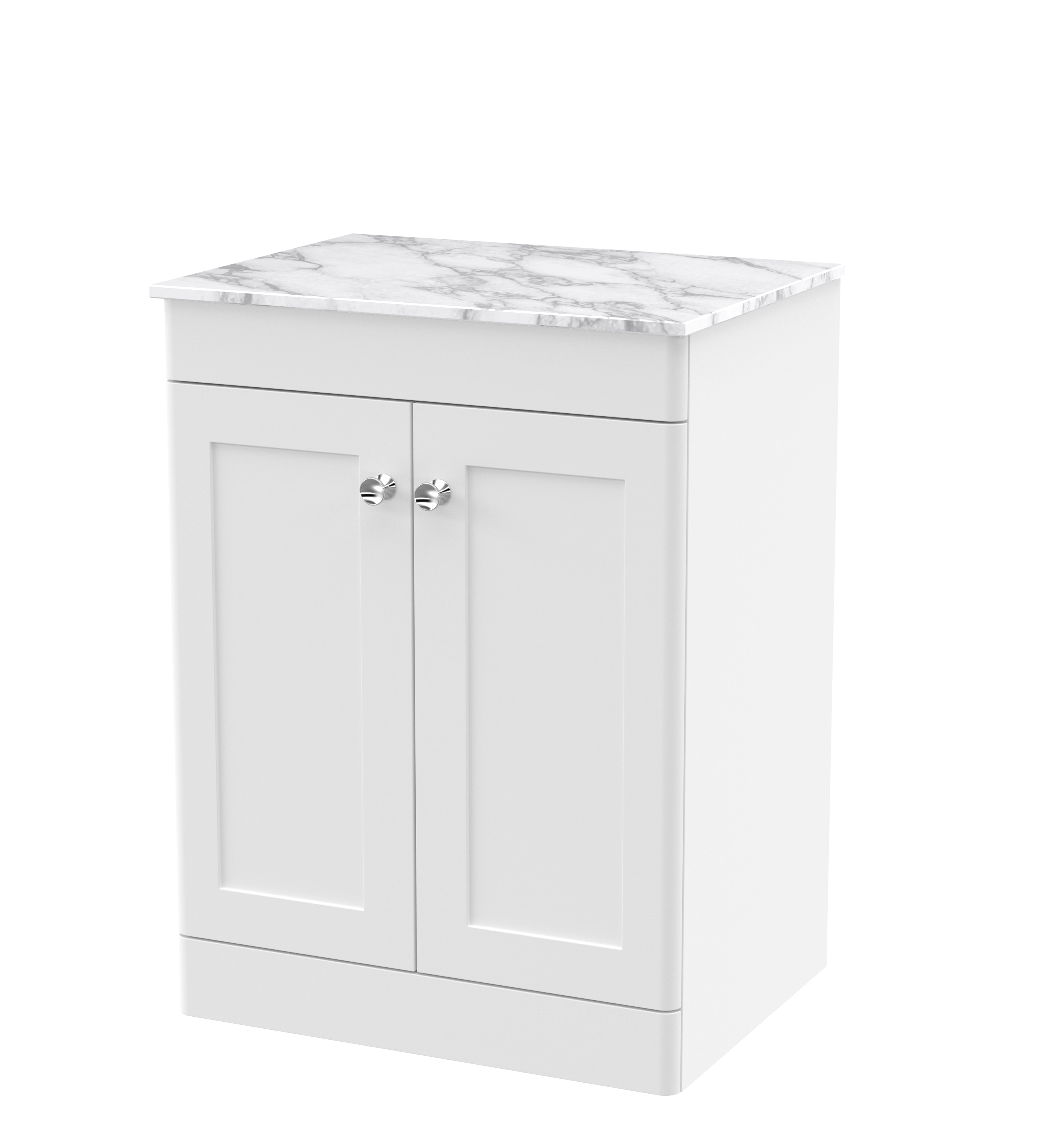 nuie Classique 600mm Floor Standing 2-Door Vanity with Marble Top - Satin White