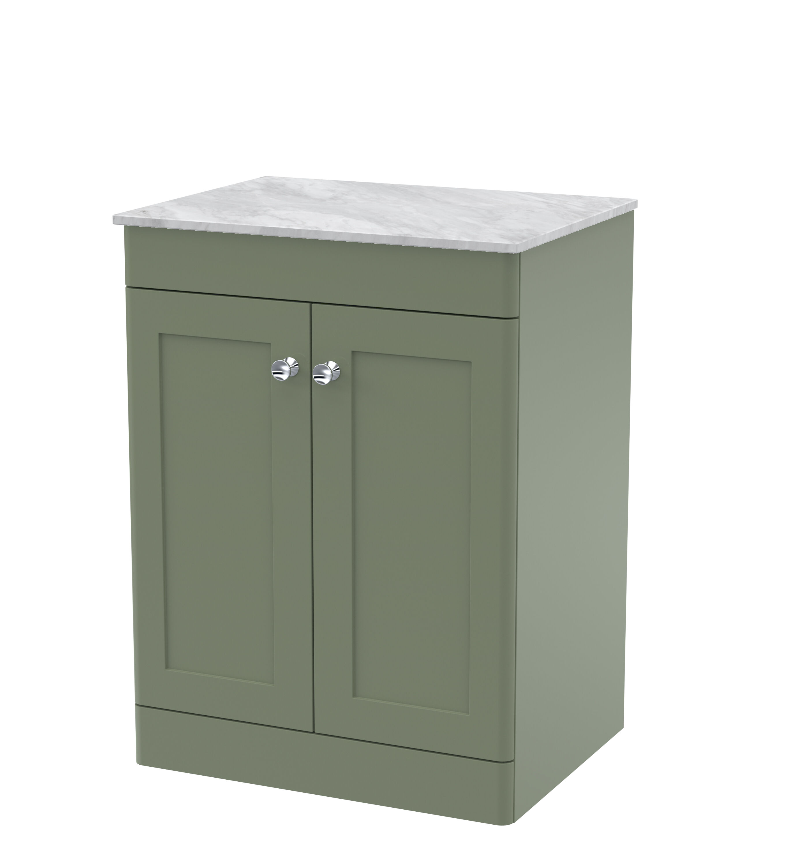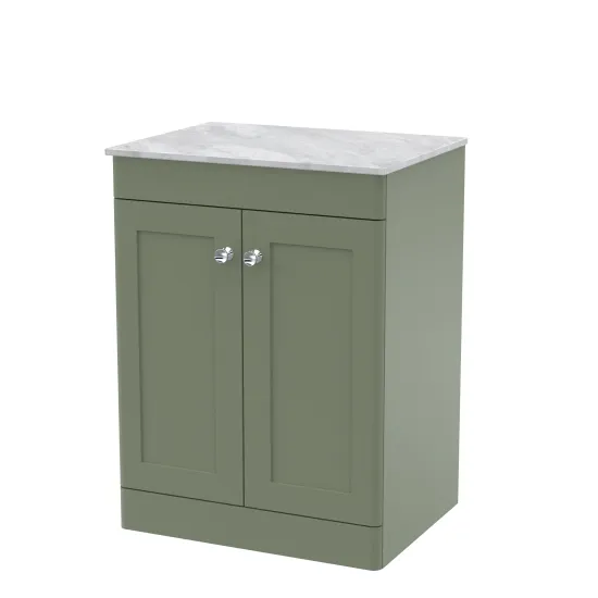 Nuie Classique 600mm Satin Green Floor Standing 2-Door Vanity Unit with Marble Top & Soft Close Doors