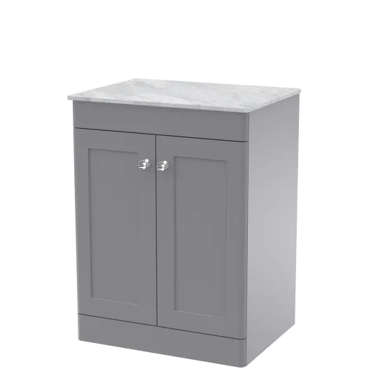 Nuie Classique 600mm Satin Grey Floor Standing 2-Door Vanity Unit with Marble Top & Soft Close Doors