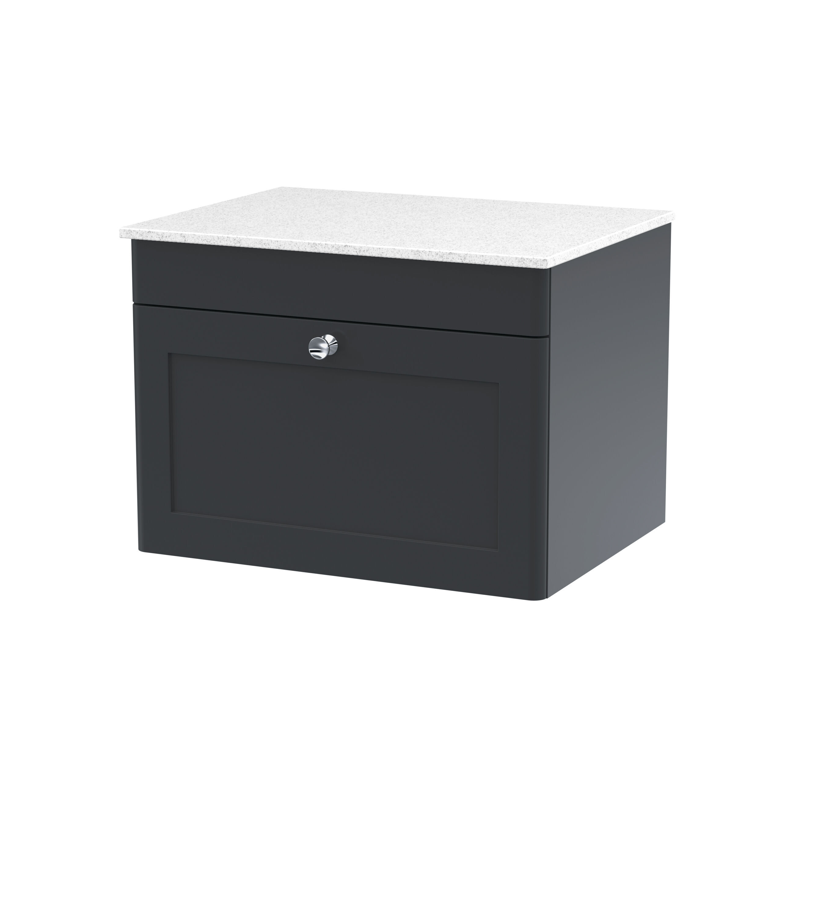 nuie Classique 600mm Wall Hung 1-Drawer Vanity with Marble Top - Soft Black