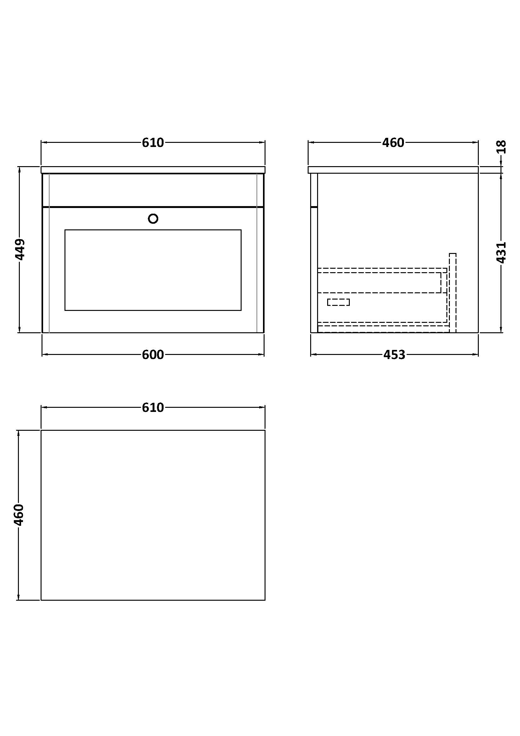 nuie Classique 600mm Wall Hung 1-Drawer Vanity with Marble Top - Satin Green