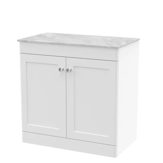 nuie Classique 800mm Floor Standing 2-Door Vanity with Marble Top - Satin White