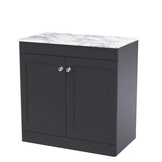 nuie Classique 800mm Floor Standing 2-Door Vanity with Marble Top - Soft Black