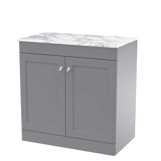 nuie Classique 800mm Floor Standing 2-Door Vanity with Marble Top - Satin Grey