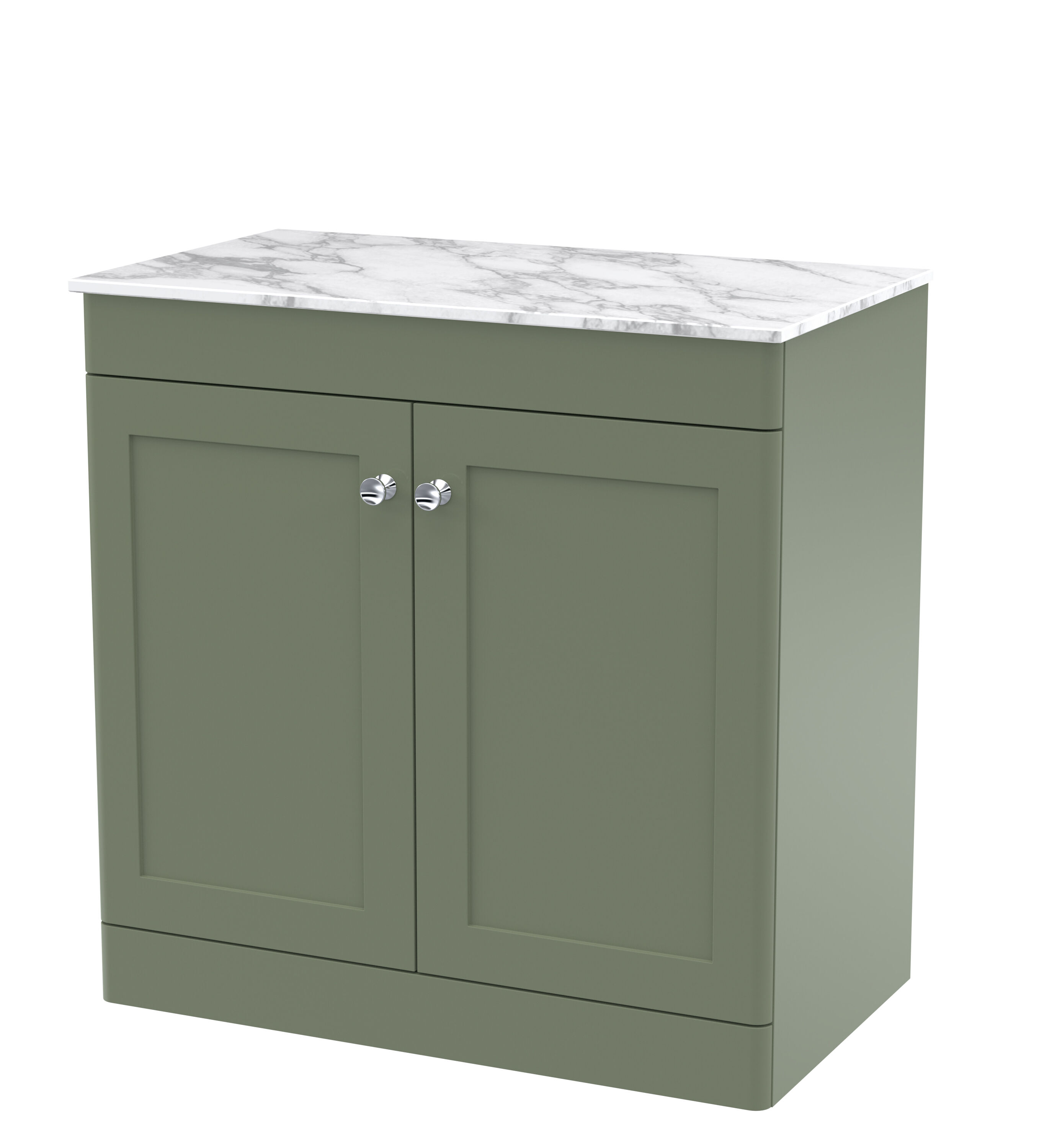 nuie Classique 800mm Floor Standing 2-Door Vanity with Marble Top - Satin Green