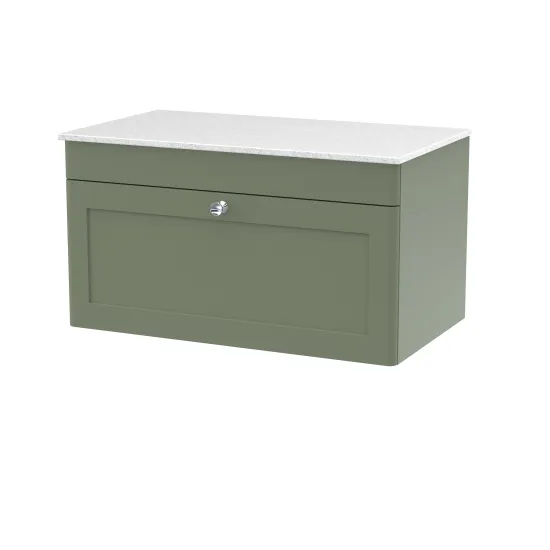 nuie Classique 800mm Wall Hung Single Drawer Vanity with Marble Top - Satin Green