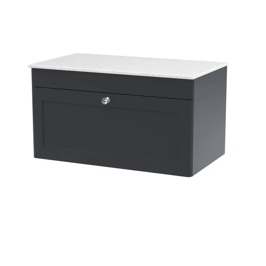 nuie Classique 800mm Wall Hung Single Drawer Vanity with Marble Top - Soft Black