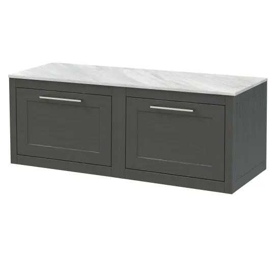 BC Designs Crestfield 1200mm Wall Hung 2-Drawer Unit & Marble Top - Dark Lead
