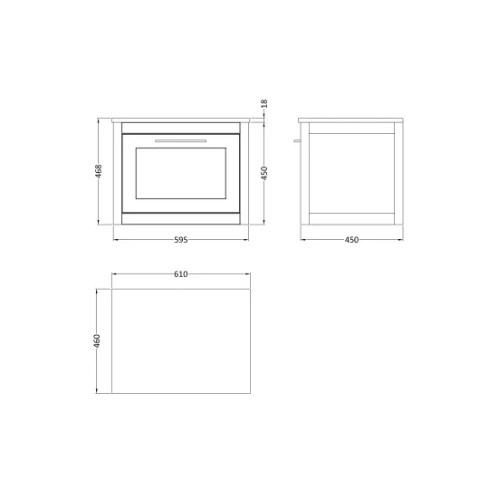 BC Designs Crestfield 600mm Wall Hung 1-Drawer Unit & Marble Top - Dark Lead