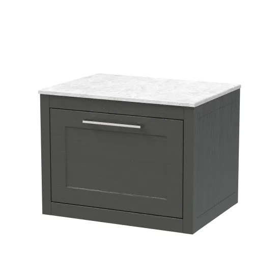 BC Designs Crestfield 600mm Wall Hung 1-Drawer Unit & Marble Top - Dark Lead