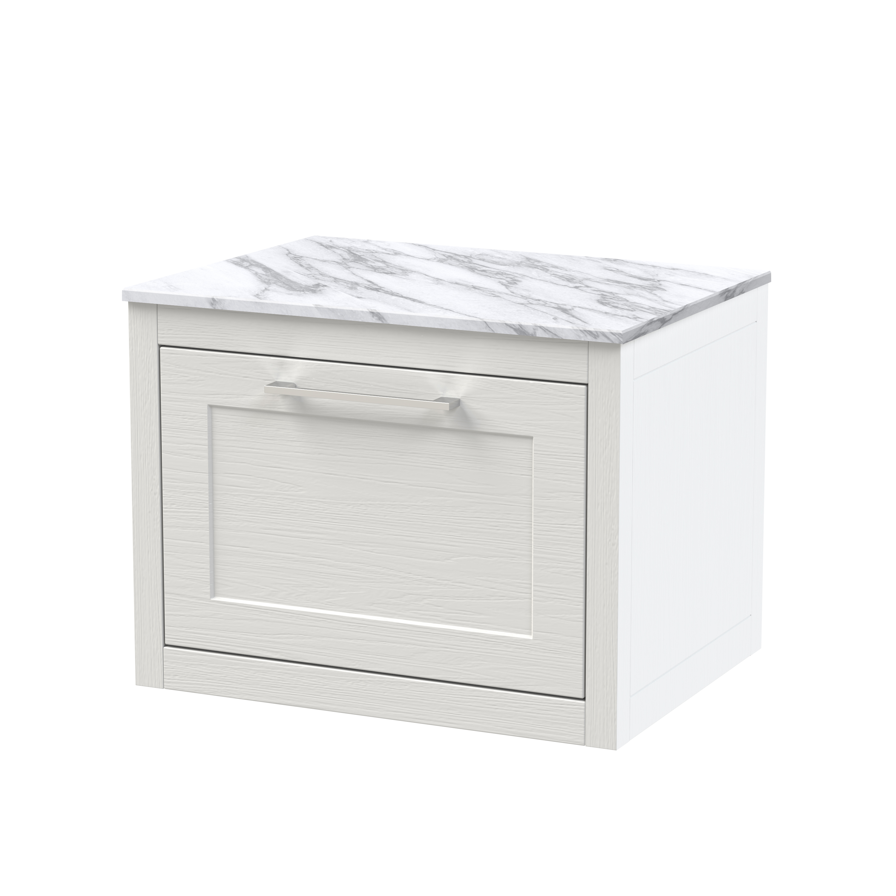 BC Designs Crestfield 600mm Wall Hung 1-Drawer Unit & Marble Top - Nimbus White