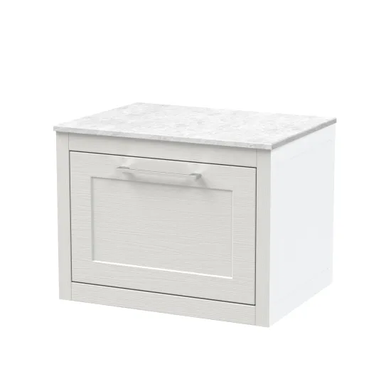 BC Designs Crestfield 600mm Wall Hung 1-Drawer Unit with Marble Top With Soft Close Drawer & Handle