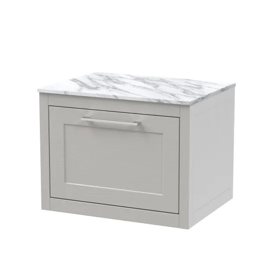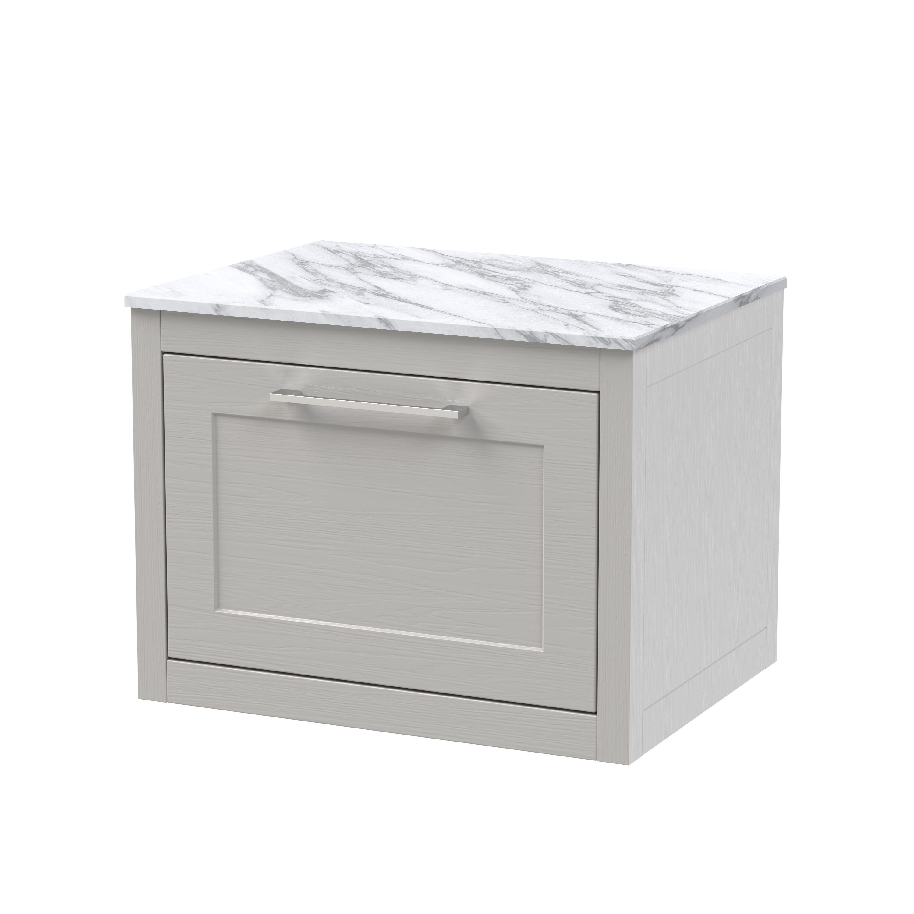 BC Designs Crestfield 600mm Earl's Grey Wall Hung 1-Drawer Unit With Marble Top & Handle