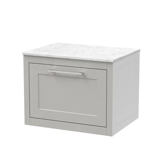 BC Designs Crestfield 600mm Earl's Grey Wall Hung 1-Drawer Vanity Unit With Marble Top