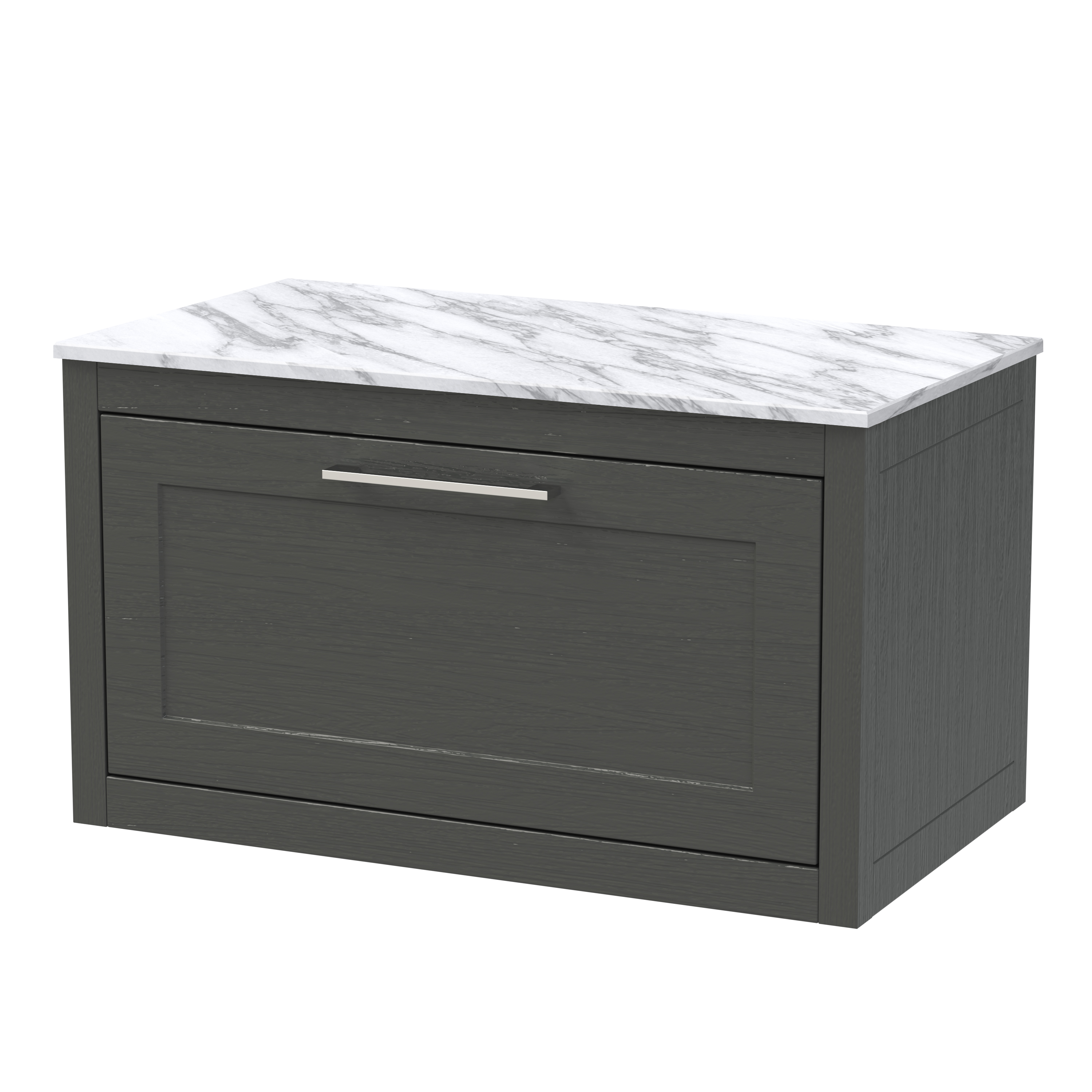 BC Designs Crestfield 800mm Wall Hung 1-Drawer Unit & Marble Top - Dark Lead
