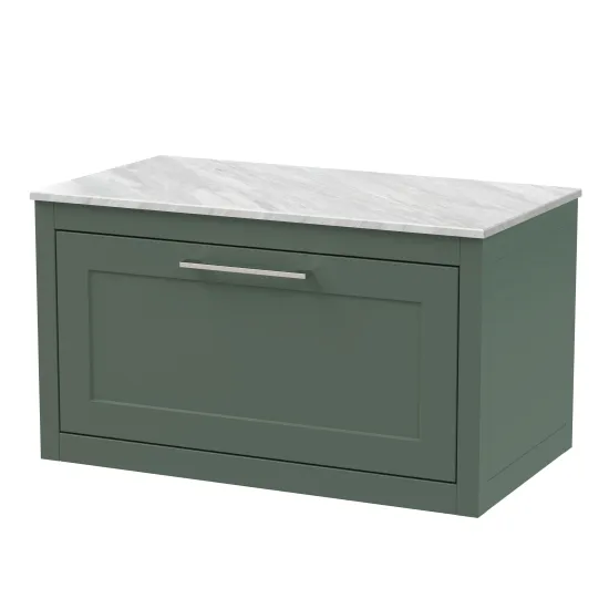 BC Designs Crestfield 800mm Wall Hung 1-Drawer Unit & Marble Top - Forest Green